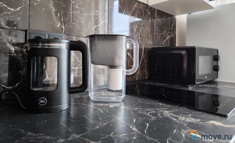 • Полностью оборудованная кухня: плита, посуда, микроволновка, чайник, холодильник.